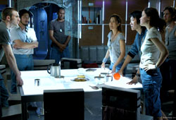 Ciò detto, Sunshine individua altrove il suo punto focale, consacrandosi all’ambivalenza tra film di genere e discorso filosofico. Servendo l’apparenza di medio disaster movie – nella tradizione recente di Armageddon e, nella new wave pseudo-ambientalista, di The Core e The Day After Tomorrow – il film di Boyle osserva diligentemente quella serie di snodi obbligati che aprono le porte della distribuzione al grande pubblico. Questo vuol dire anche abbracciare apertamente la derivazione e confrontarsi con mostri sacri come 2001, Alien e Solaris. La giusta presunzione di Boyle è quella di reinventare la suspense in un asettico corridoio spaziale, di presentare un super-computer che anima la nave e dialoga con l’equipaggio, di scrutare l’uomo nel momento di massima hybris del contatto con l’assoluto. Boyle lo fa bene, tanto da superare di slancio il primo livello di lettura del film e portare lo spettatore a gustare la nuova veste di questo gigante cocktail.